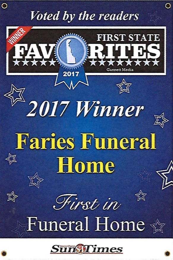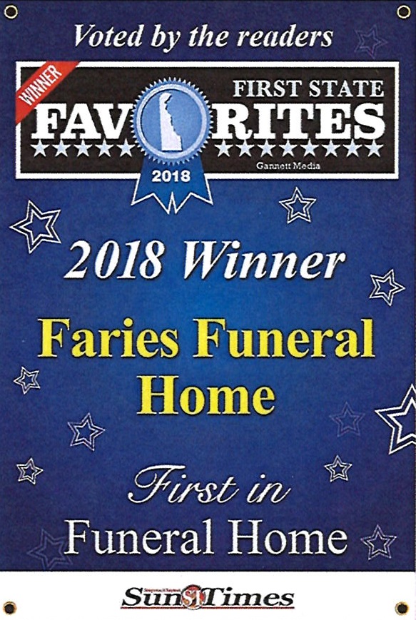 We're proud to be selected as the best funeral home in the area for the past 6 consecutive years, however, after considerable thought, Faries Funeral Home and Crematorium has decided not to participate in the annual Gannett Media (News Journal, Sun Times, Dover Post, etc…) First State Favorites Campaign this year. This is a yearly campaign that Gannett Media uses to solicit ads from businesses in a competition format that puts businesses up against each other by category.